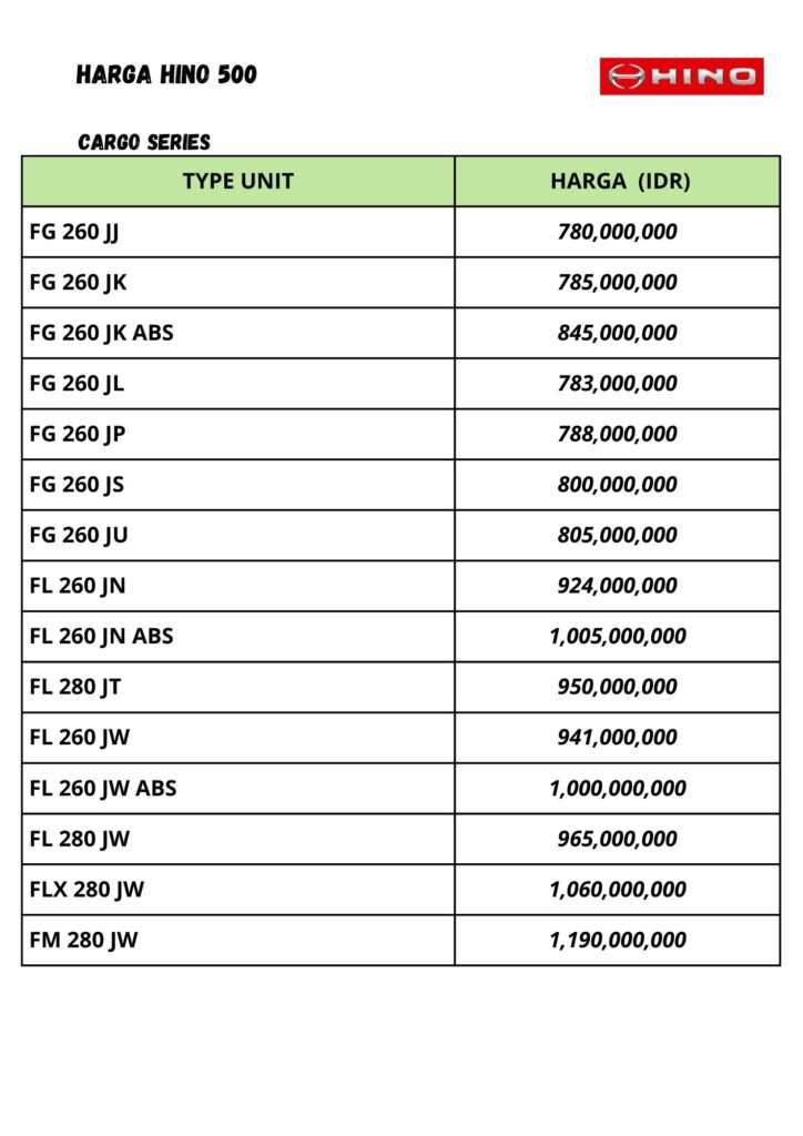 Hino 500 series Ranger mempunyai banyak type dan terbagi 4 segmen yaitu CARGO, TRACTOR HEAD, DUMP TRUCK dan MIXER, diantaranya :